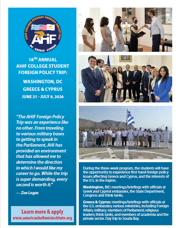 Since 1974, AHI has advanced U.S. interests in Greece, Cyprus, and the Eastern Mediterranean through policy, history, and advocacy
