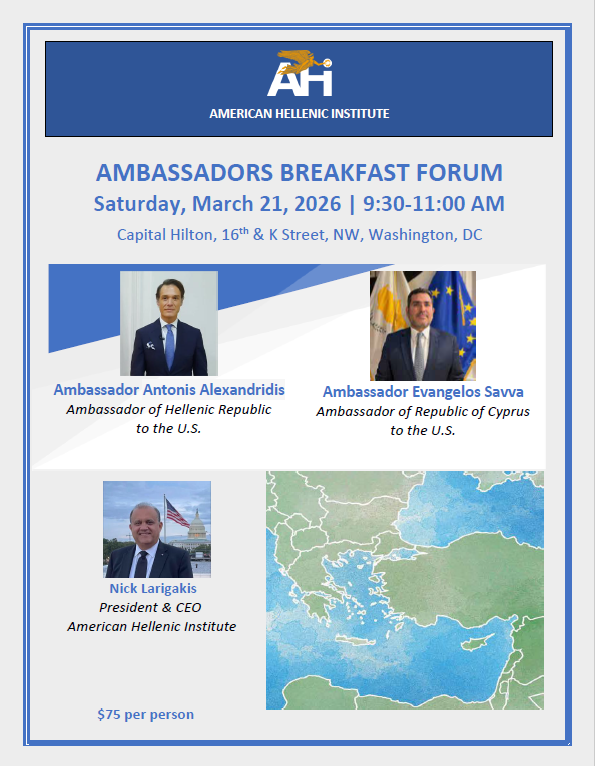 “Since 1974, the American Hellenic Institute has been an important rule of law advocate in Washington and has been actively working in order to promote bilateral relations between Greece and the United States.”